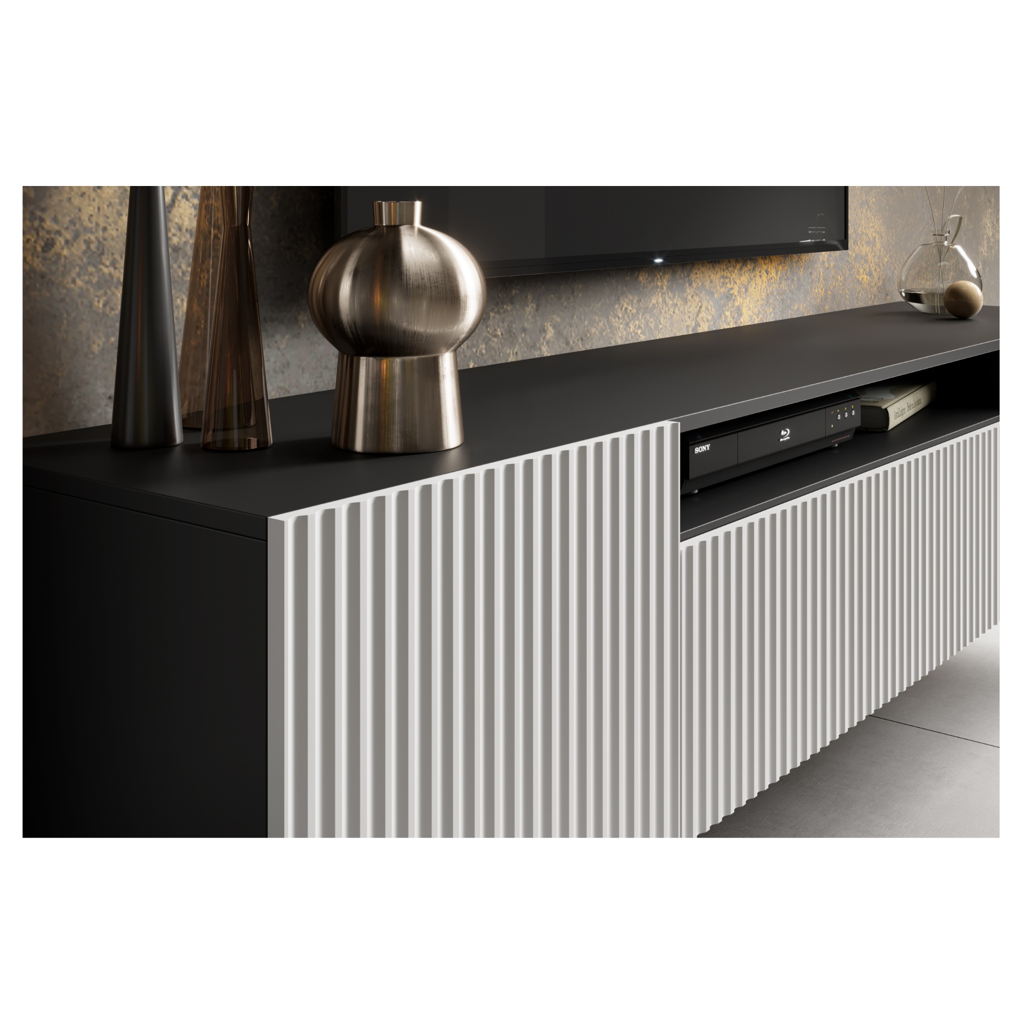 TV stolík ponúka dostatok úložného priestoru, ktorý je uzatvárateľný 2 otočnými a 1 výklopnými dvierkami**. Poskytne tak miesto nielen pre TV príslušenstvo, ale aj ďalšie veci, ktoré v obývačke potrebujete mať po ruke.