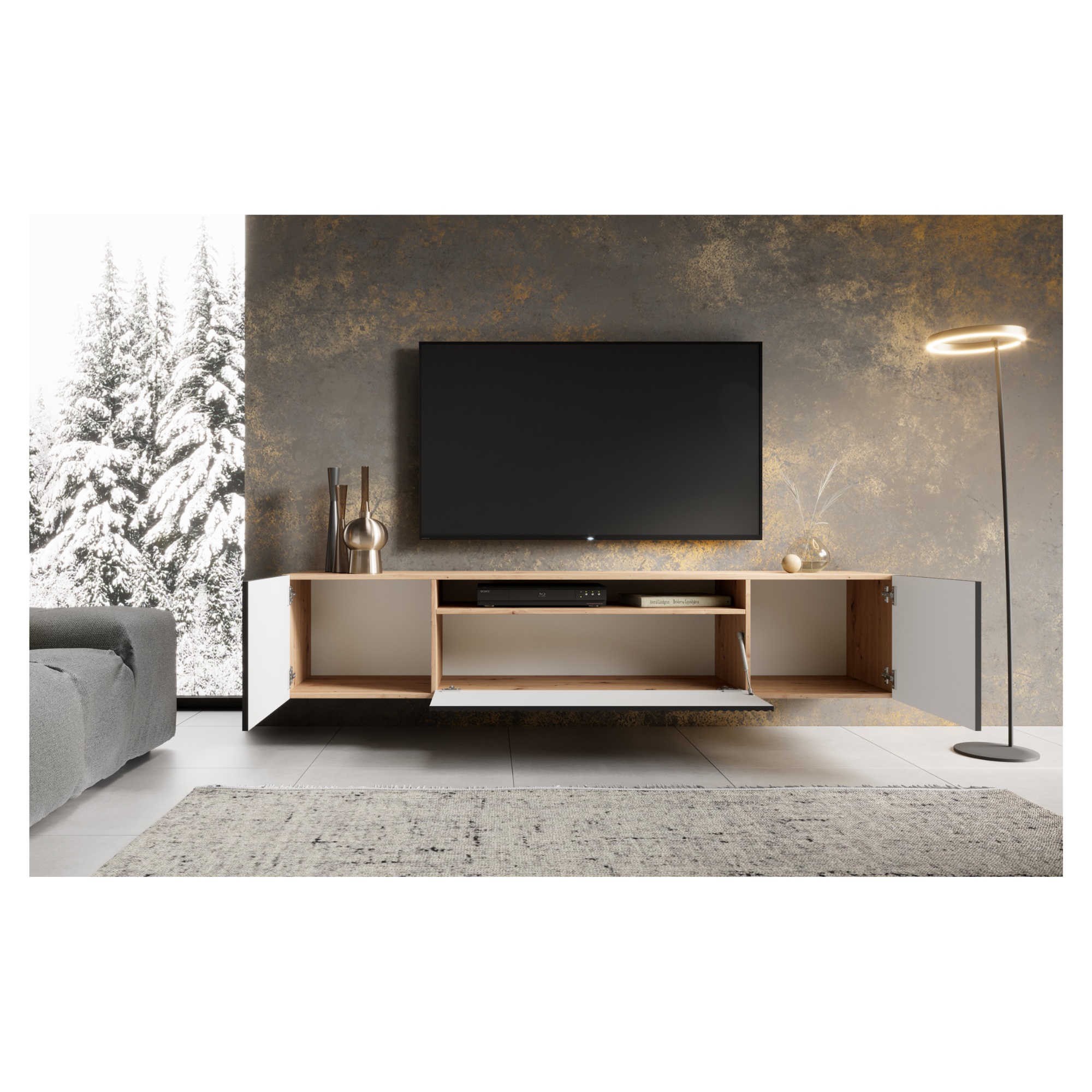 TV stolík ponúka dostatok úložného priestoru, ktorý je uzatvárateľný 2 otočnými a 1 výklopnými dvierkami**. Poskytne tak miesto nielen pre TV príslušenstvo, ale aj ďalšie veci, ktoré v obývačke potrebujete mať po ruke.