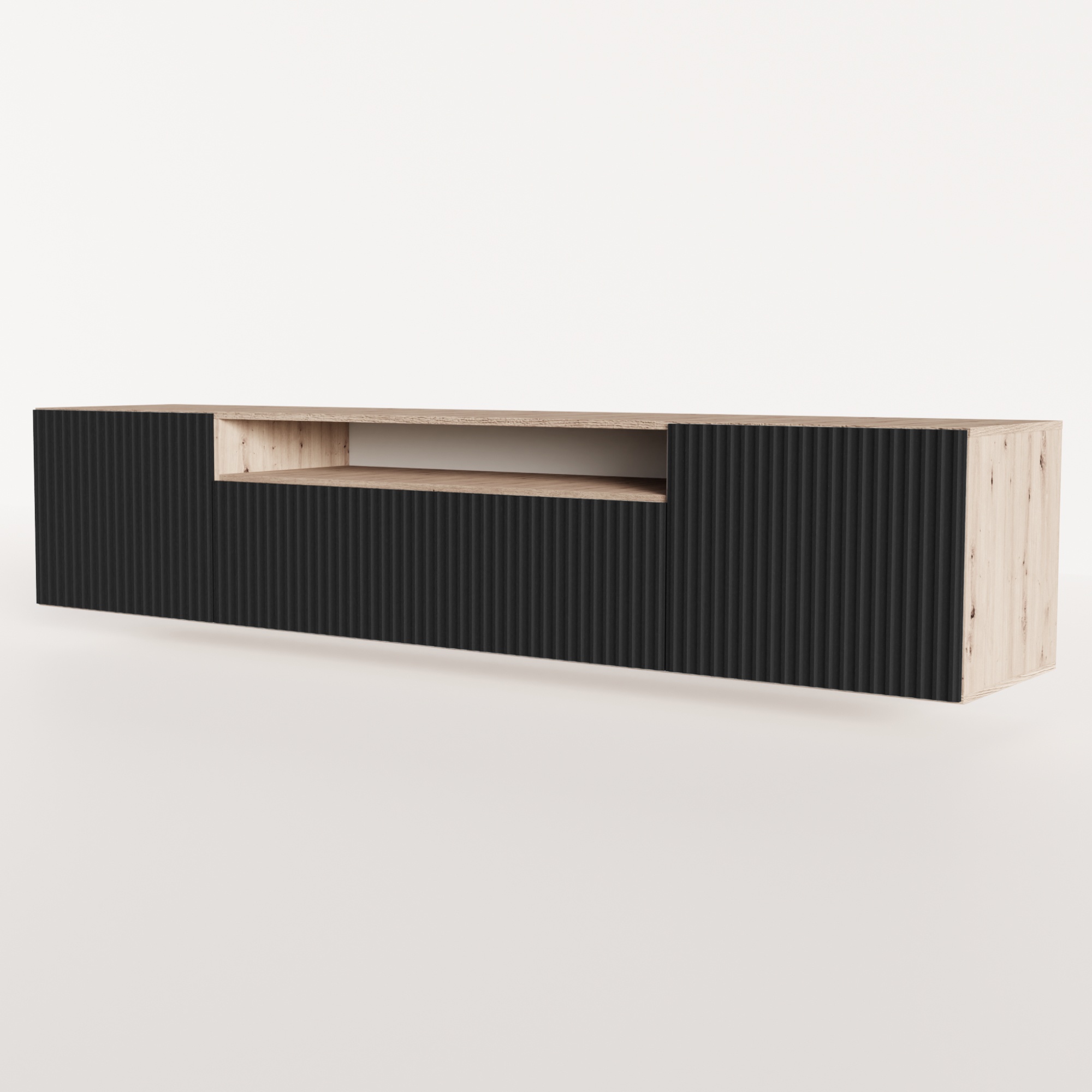 Závesný TV stolík NONIE, ktorý zaujme štýlovým bezrúčkovým prevedením, moderným vzhľadom i praktickosťou, dokonale zapadne do každej obývacej izby.