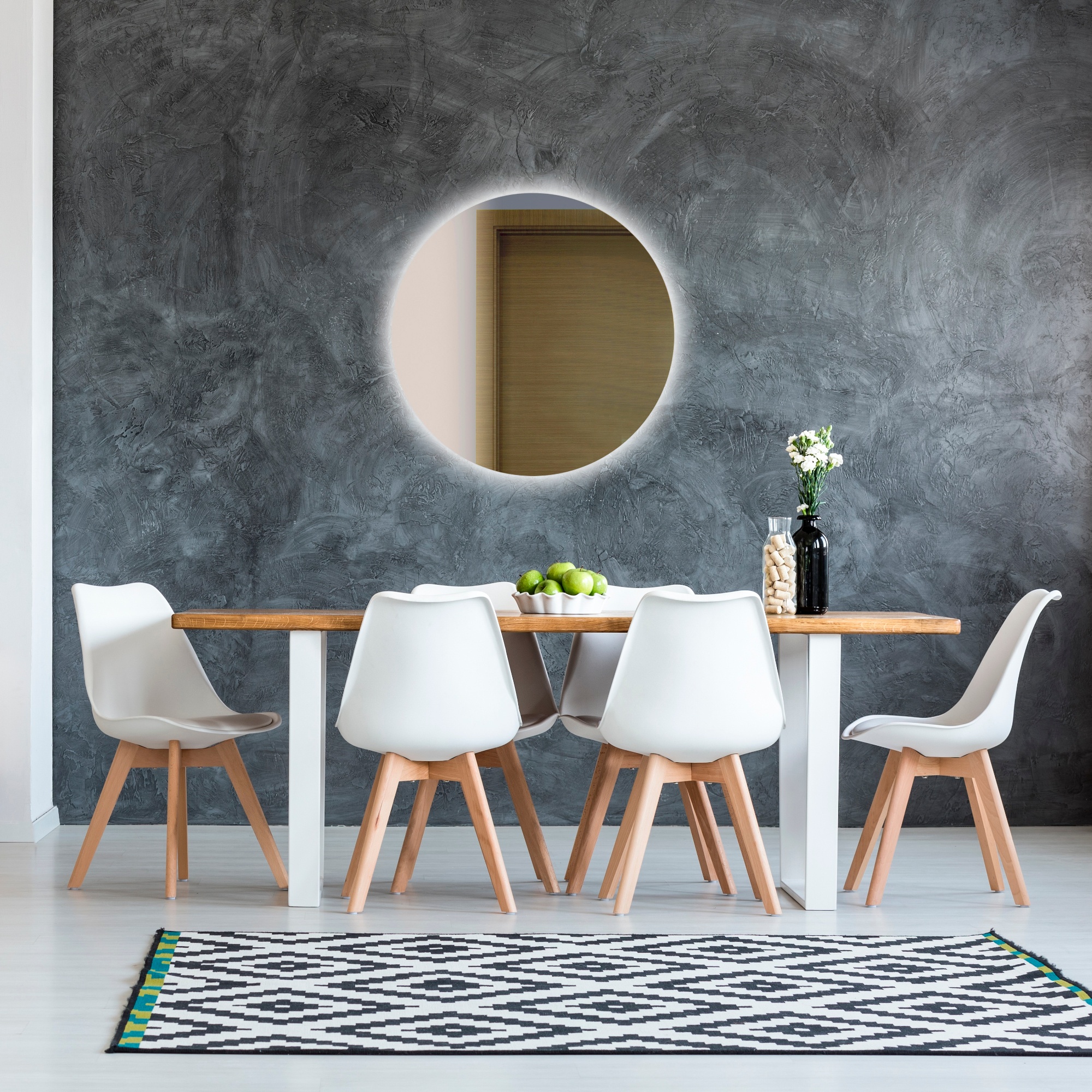 Veľké nástenné zrkadlo AMBIENTE RONDE okrúhleho tvaru sa určite stane výrazným prvkom vášho interiéru, ktorý zaujme nejeden pohľad. Na rozdiel od iných zrkadiel nemá rám, ale po celom obvode ho lemuje LED podsvietenie spĺňajúce stupeň krytia IP44. Rozsvieti sa k tomu určeným vypínačom umiestneným na stene. Zrkadlo sa postará o to, aby ste vždy vyzerali skvele a zároveň opticky zväčší a presvetlí interiér. Zrkadlo AMBIENTE RONDE s priemerom 70 cm sa najviac hodí do priestranných kúpeľní, ale skvele bude vyzerať aj v jedálni, spálni alebo v obývacej izbe.