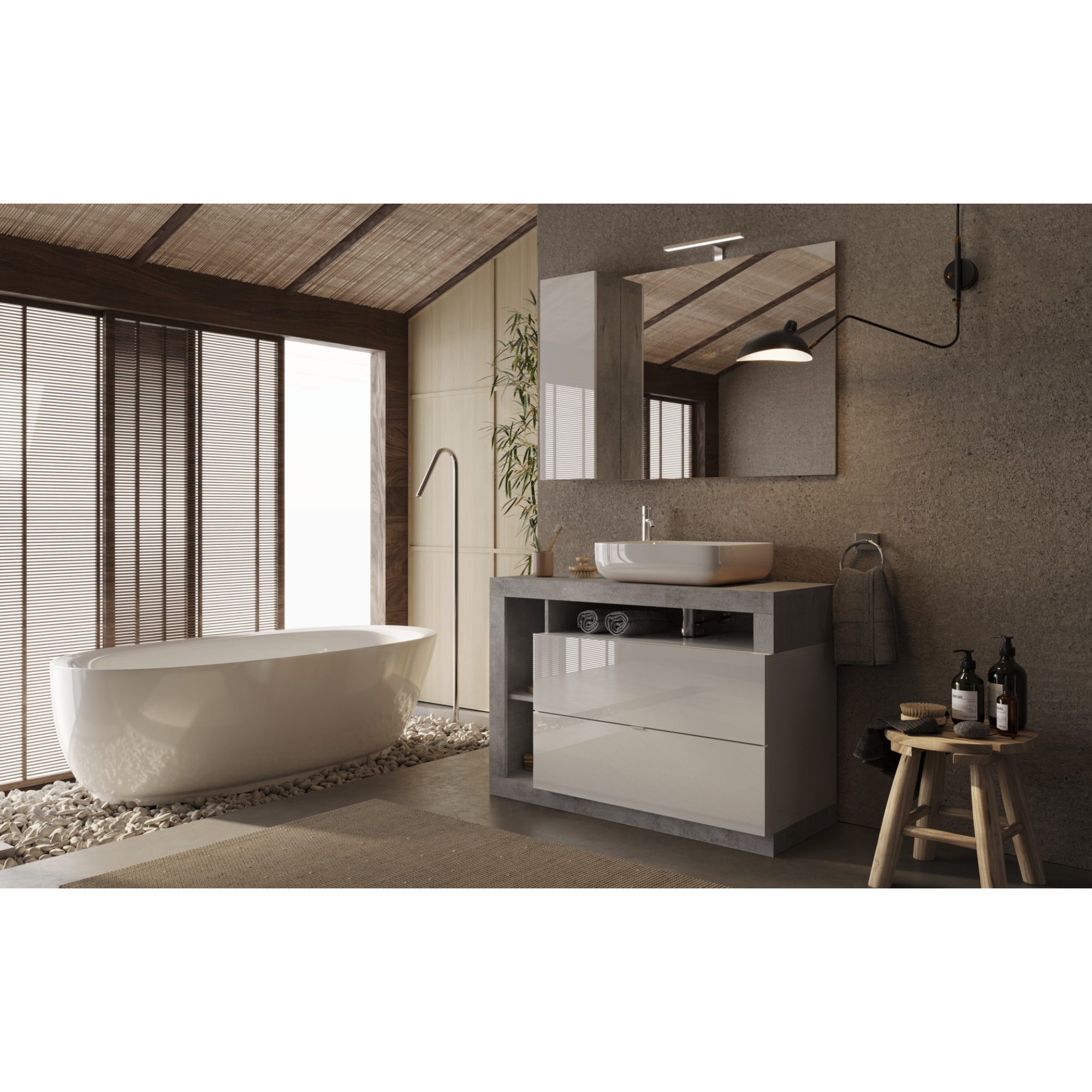 Zrkadlová skrinka HAMBURG 3 - betón/biela lesklá