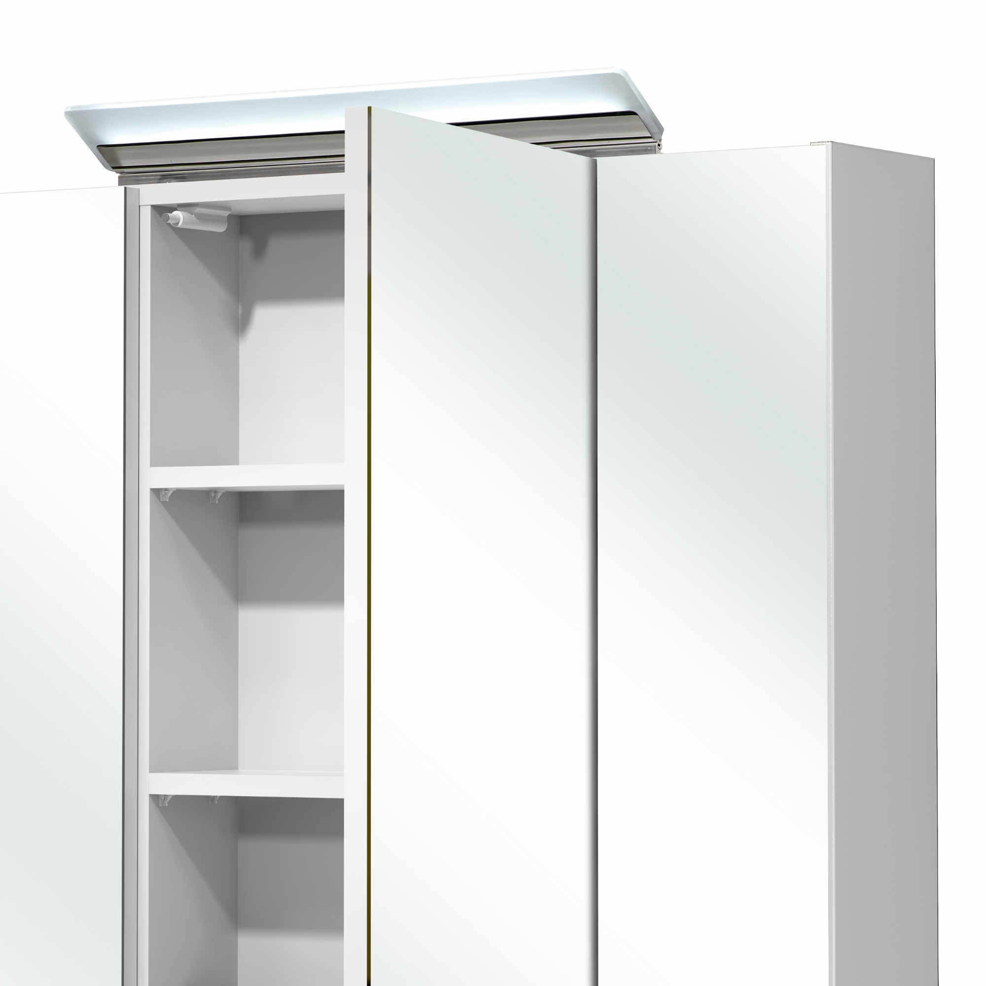 Za zrkadlovými dvierkami nájdete odkladací priestor delený policami, ktorý poskytne zázemie na kozmetické a hygienické prípravky. Integrované LED osvetlenie zaistí dostatok svetla a vytvorí v kúpeľni príjemnú atmosféru, zdroj je nevymeniteľný.
