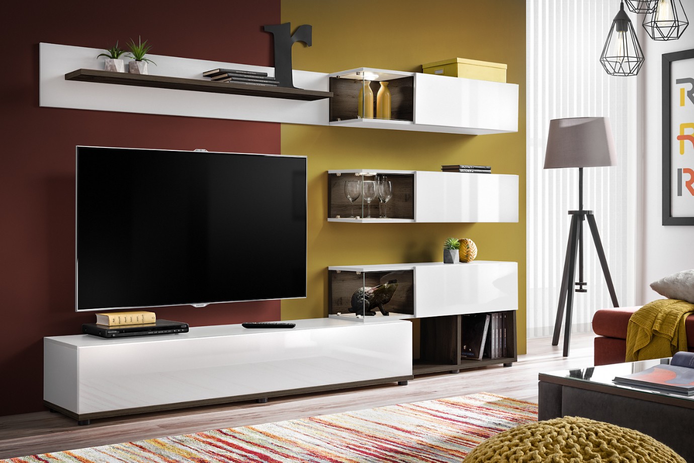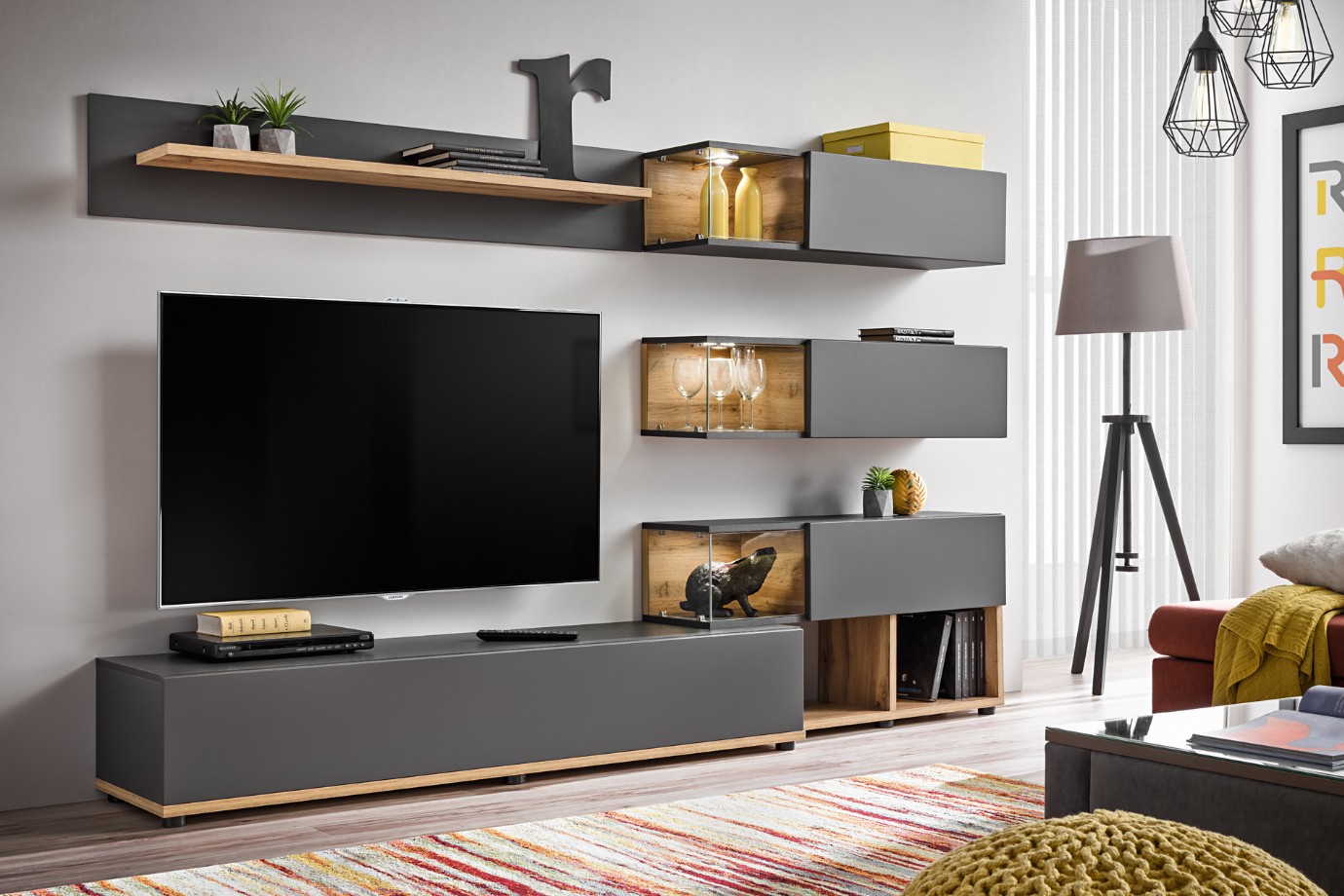 Séria produktov JAMIL hravo podtrhne každú modernú domácnosť. Jednotlivé kusy sú vyrobené v kombinácii laminovaného dreveného materiálu a drevovláknitých dosiek MDF – zvolené materiály vynikajú ľahkou udržiavateľnosťou aj dlhou životnosťou. Prvky v dekore dreva navyše inak čistému modernému dizajnu prepožičajú nádych prírody. Štýlové a praktické LED osvetlenie presklených častí rozjasní temné večery, ktorým dodá pocit útulna a bezpečia. Vďaka striedmym rozmerom bude séria produktov JAMIL vhodnou voľbou aj do menších bytov.