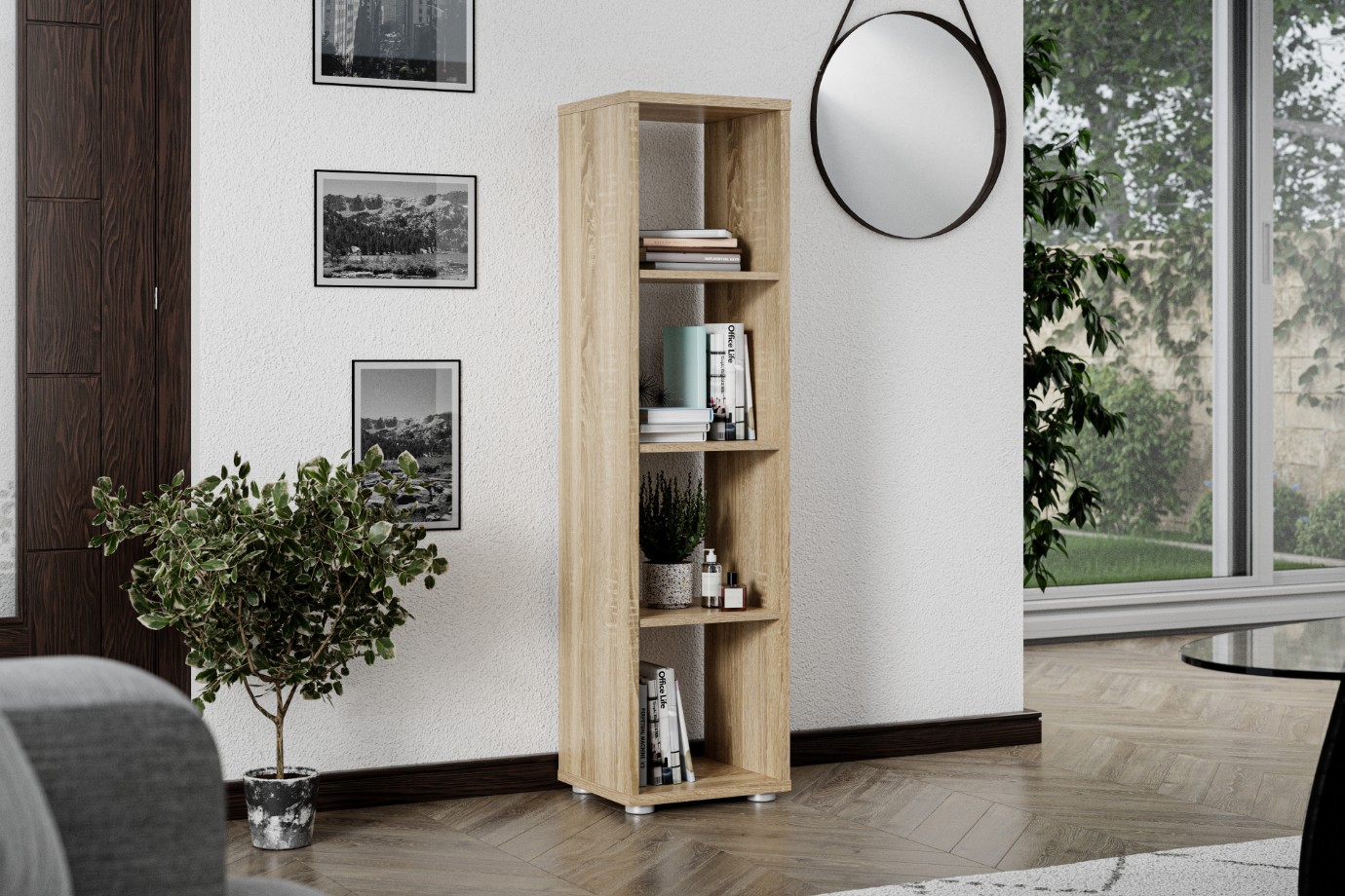 Séria produktov RENA svojím nadčasovým dizajnom hravo zapadne do každej domácnosti. Vďaka rôznym veľkostiam ponúka bohatý úložný priestor na dekorácie, knihy a jednoducho na čokoľvek, čo chcete mať na očiach. Regály sú vyrobené z laminovaného dreveného materiálu, ktorý sa vyznačuje jednoduchou udržiavateľnosťou a dlhou životnosťou. Skvele zapadnú do obývacej izby, kancelárie a pracovne, ale napríklad aj do predsiene.