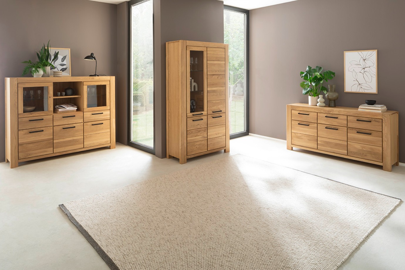 Ak túžite po kuse kvalitného dreveného nábytku, ďalej hľadať nemusíte. Predstavujeme sériu SILIAS, ktorá dokáže zariadiť celú obývaciu izbu. Každý kus je unikát, vďaka prírodnej kresbe masívneho dubového dreva. Aj preto vám bude slúžiť dlhé roky. Drevo je navyše ošetrené olejovým náterom, zaisťujúcim jeho ochranu a živý vzhľad. Doplňujúcim prvkom sú čierne kovové rúčky na pohodlnejšie zaobchádzanie. Séria SILIAS predstavuje moderný dizajn v masívnom vyhotovení, ktoré zaručene nesklame.